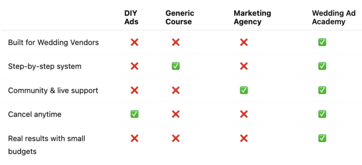 The Wedding Ad Academy is a wedding-specific ad system designed to: